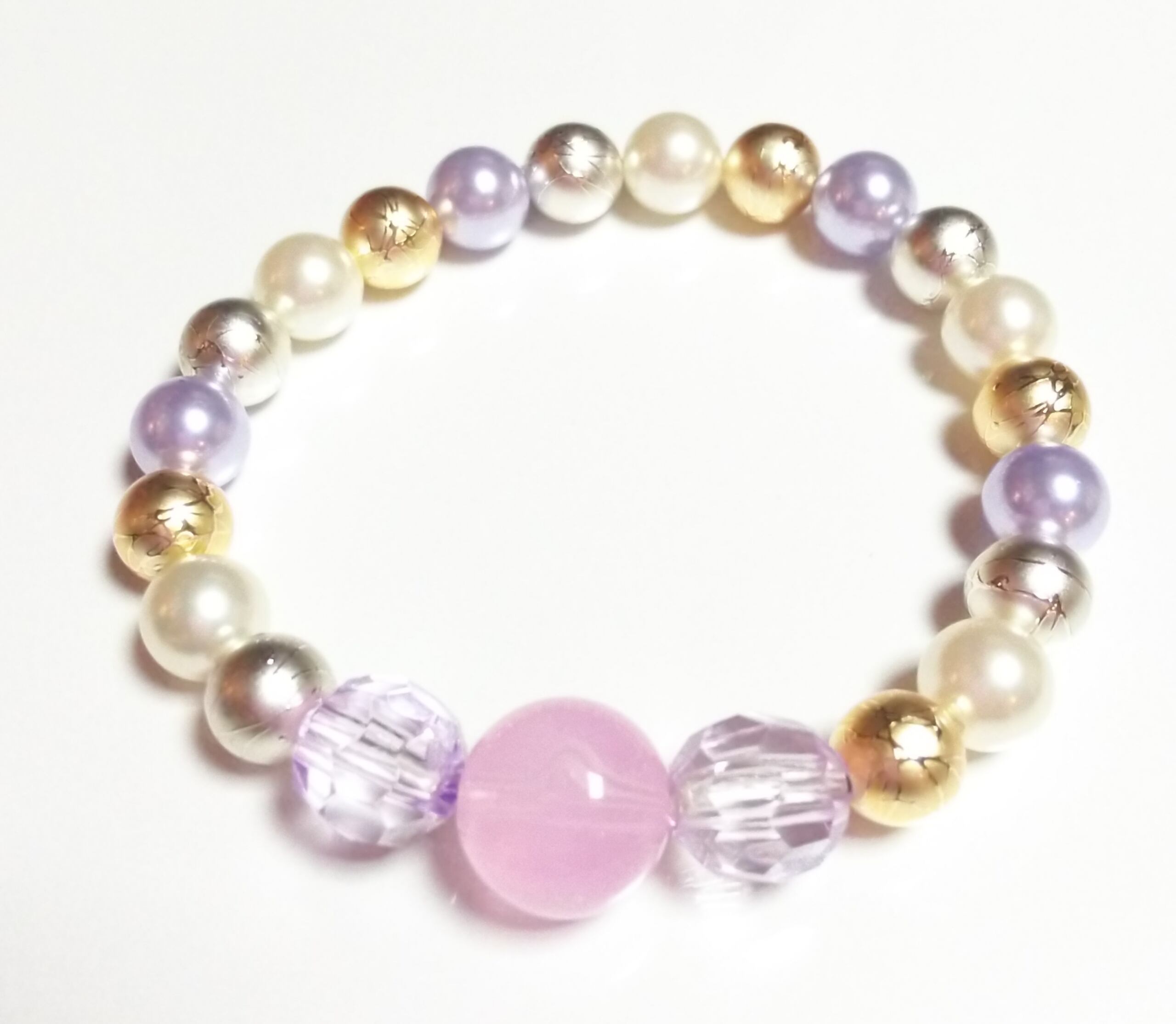 ホワイト・ラベンダー・ゴールド・シルバーのパールブレスレットです。
