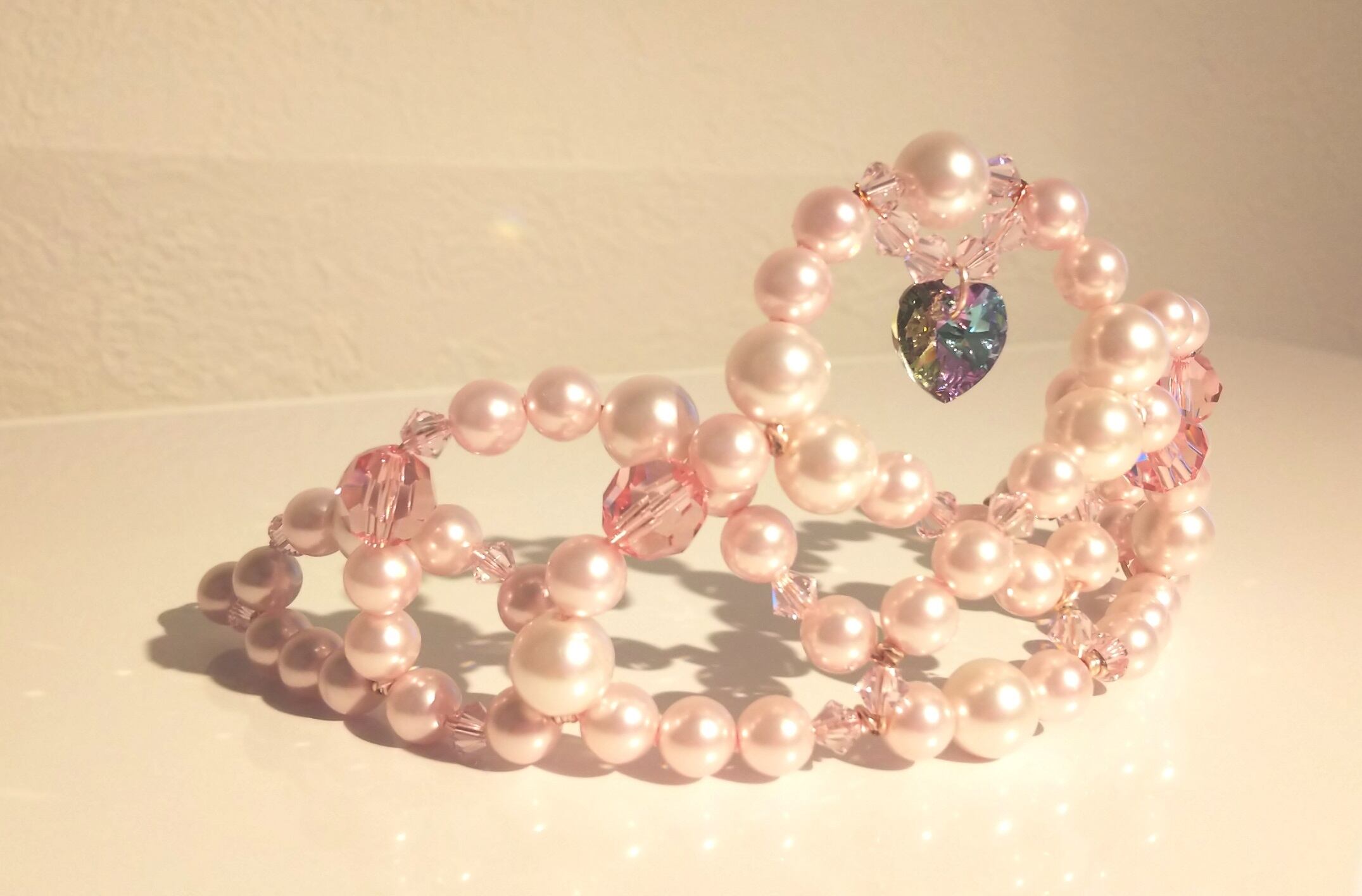 パールとスワロフスキーのみを使用、シンプルで上品ながらも、とびきりの可愛さ。
