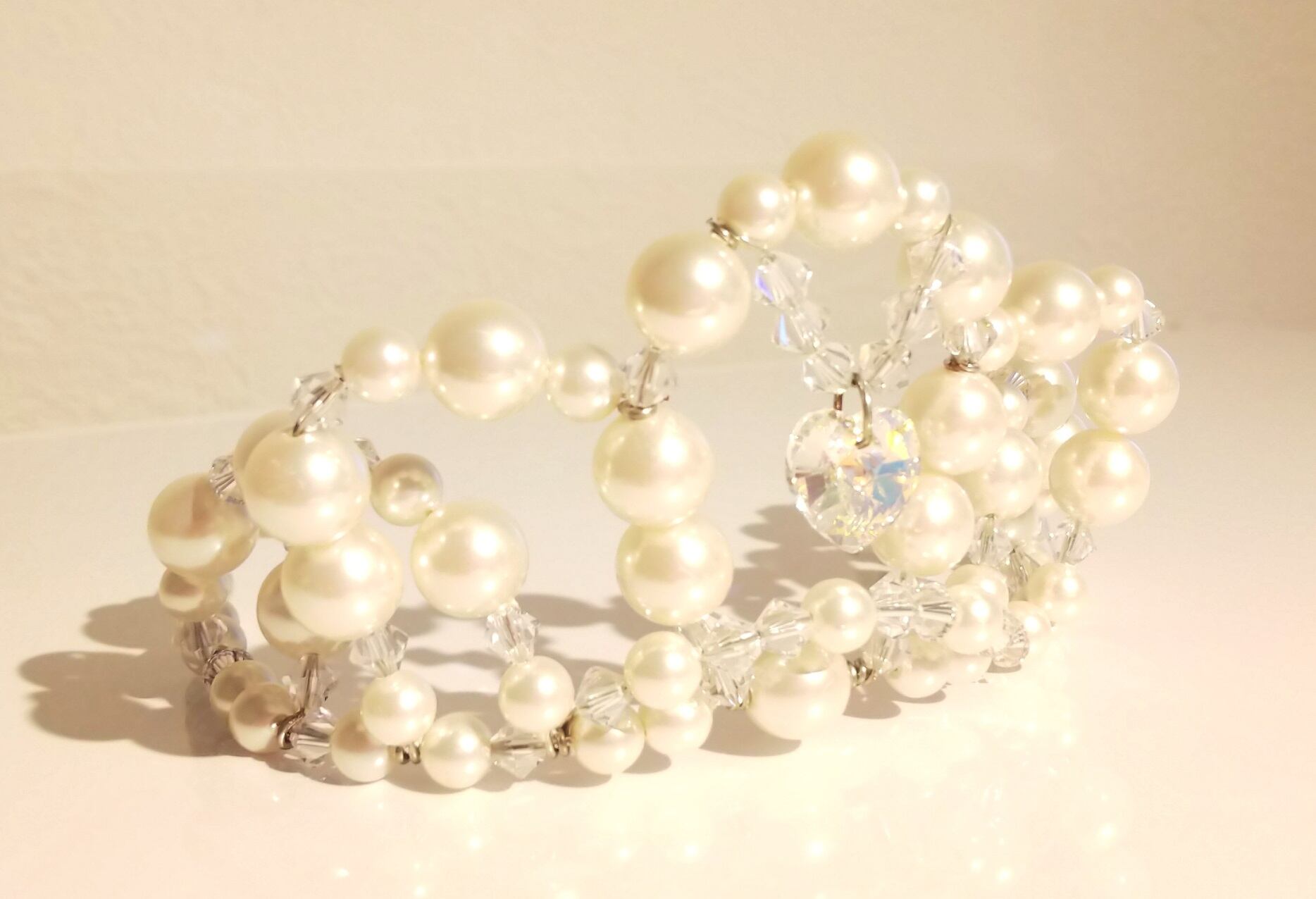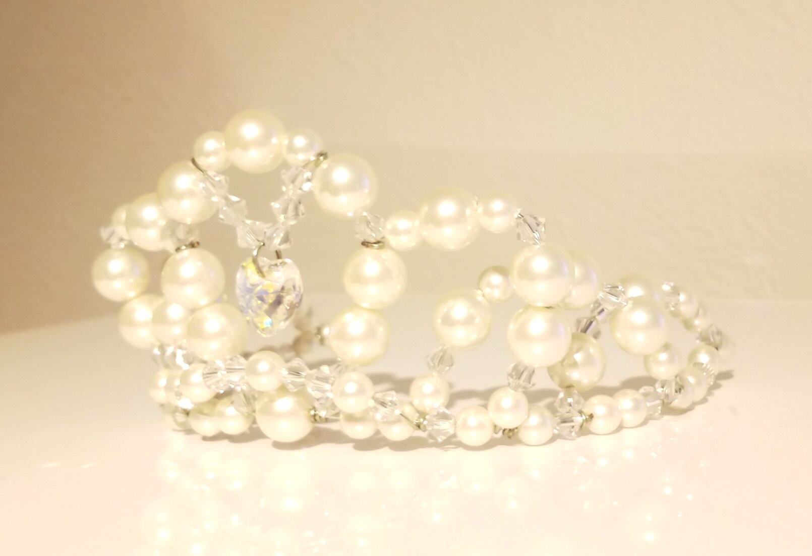 パールとスワロフスキーのみを使用、シンプルで上品ながらも、とびきりの可愛さ。