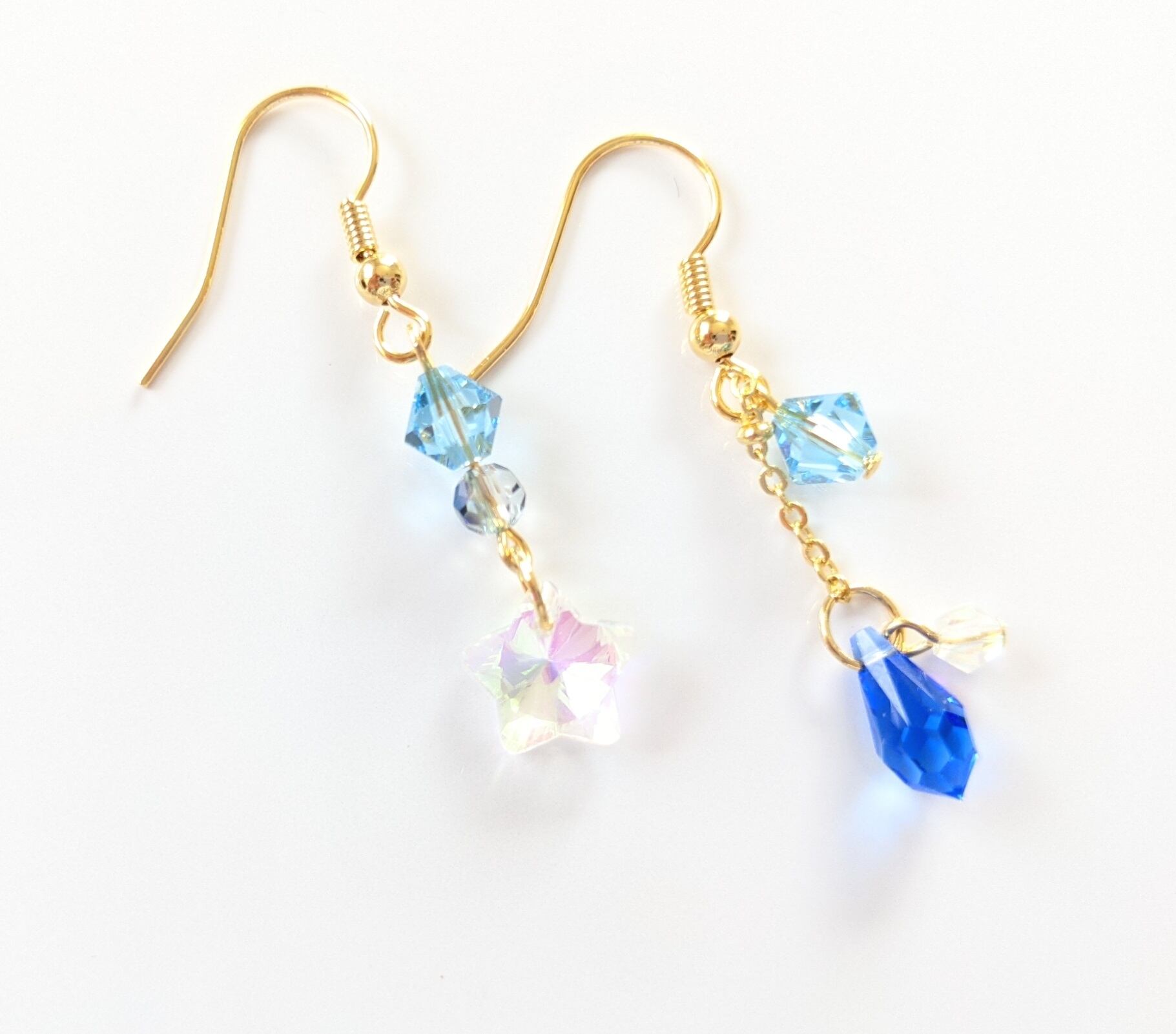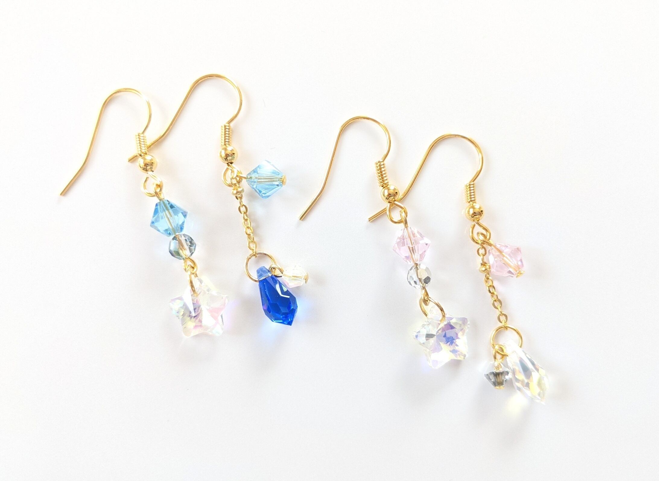 キラキラと浮かぶ星や月をイメージして制作したピアスです。